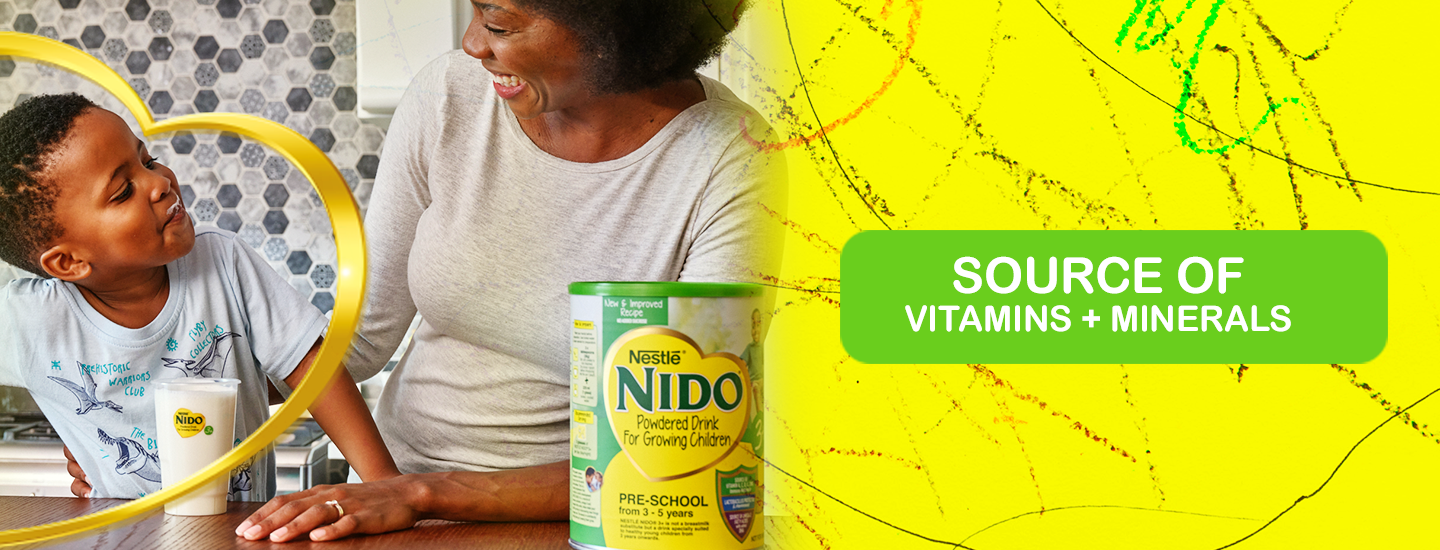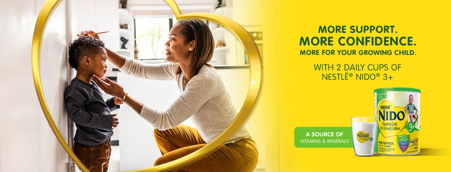 Why is this good for your child you may ask? NESTLÉ® NIDO® 3+ is a powdered drink specially suited for growing children. NESTLÉ® NIDO® 3+ is a source of vitamin A and iron for growing South African pre-schoolers aged 3 years and older.